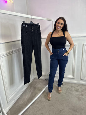 KMO DEBBIE high waisted denim jegging with button detail and back pockets - 28''